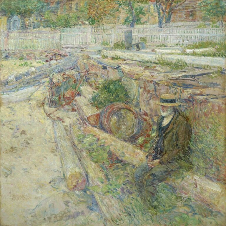 Hassam’s art career began with training as a wood engraver and draftsman. Simultaneously, he worked as a free-lance illustrator, namely of stories for children. He also attended art classes at the Lowell Institute and the Boston Art Club during this time. Though he worked in oils and watercolor; he quickly developed a preference for the latter.