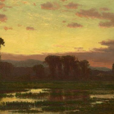 A prominent member of the Hudson River School’s second generation of artists, James R. Brevoort created rich, atmospheric landscapes that evoked nature’s quiet mystery. Brevoort originally trained as an architect, graduating from New York University’s School of Design in 1854, and his paintings’ subtle compositions bare his skill as a draughtsman. He went on to study painting at the National Academy of Design and was named their Professor of Scientific Perspective in 1872. He also helped to found the Yonkers Art Association. Brevoort’s work is now in The Corcoran Gallery of Art, the Hudson River Museum, and the Saint Louis Art Museum.