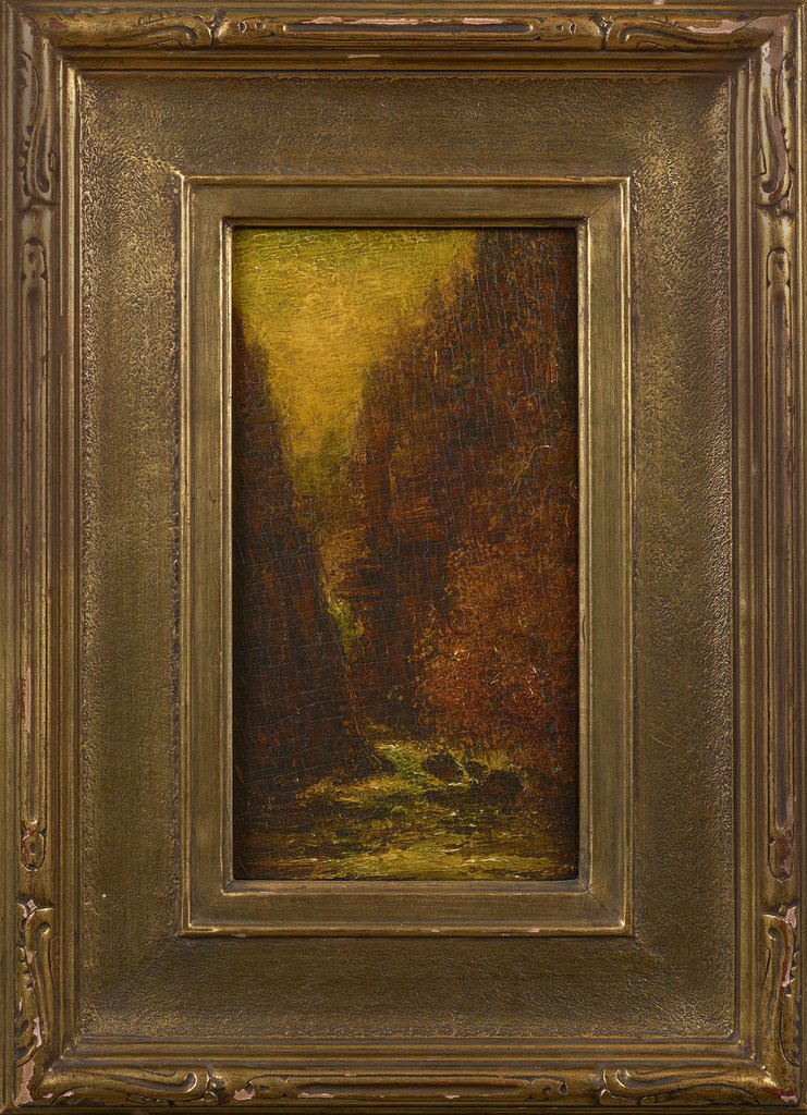 Signed lower left in arrowhead: R.A. Blakelock; on verso: Arizona Canyon / R. A. Blakelock (in arrowhead)
