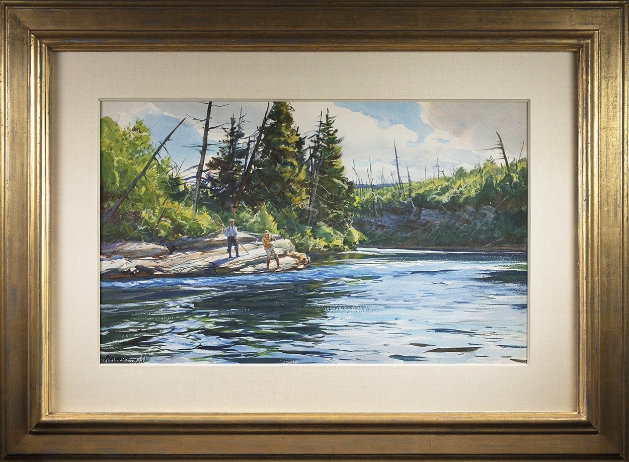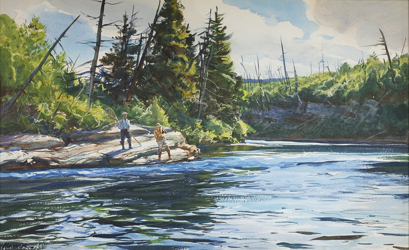 Note: Flora Whitney Miller (1897–1986) was the daughter of Gertrude Vanderbilt and Harry Payne Whitney and was a great collector and patron of the arts. In 1927, she married her second husband G. Macculloch Miller. This work was commissioned from the artist by the Miller family and depicts the York River on Gaspé Peninsula, Québec, one of the most desirable locales for Atlantic salmon fishing.