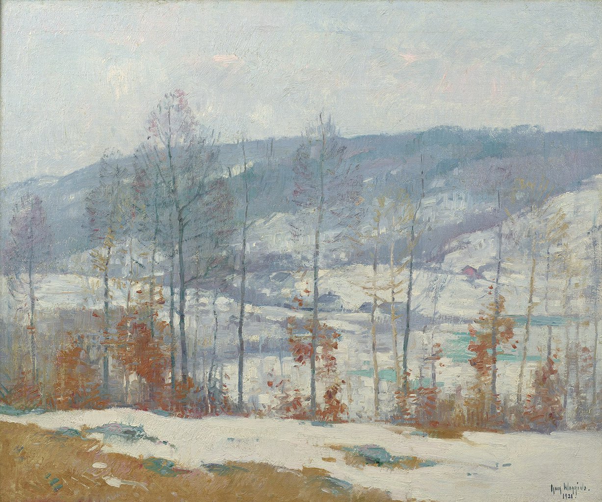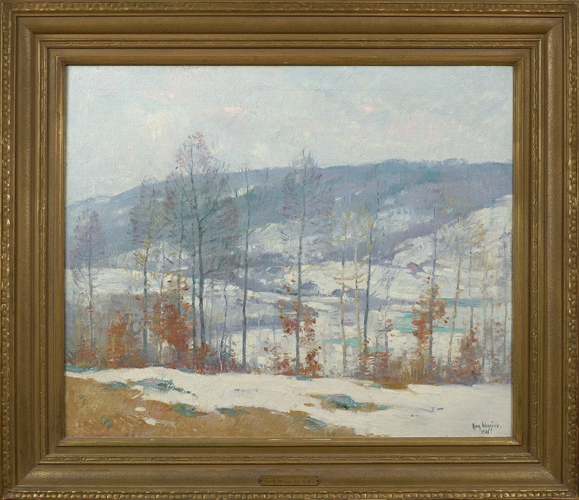 Signed lower right: Guy Wiggins. / 1921.; on verso: “Candlewood Hills in Winter” / Guy Wiggins. / 1921.