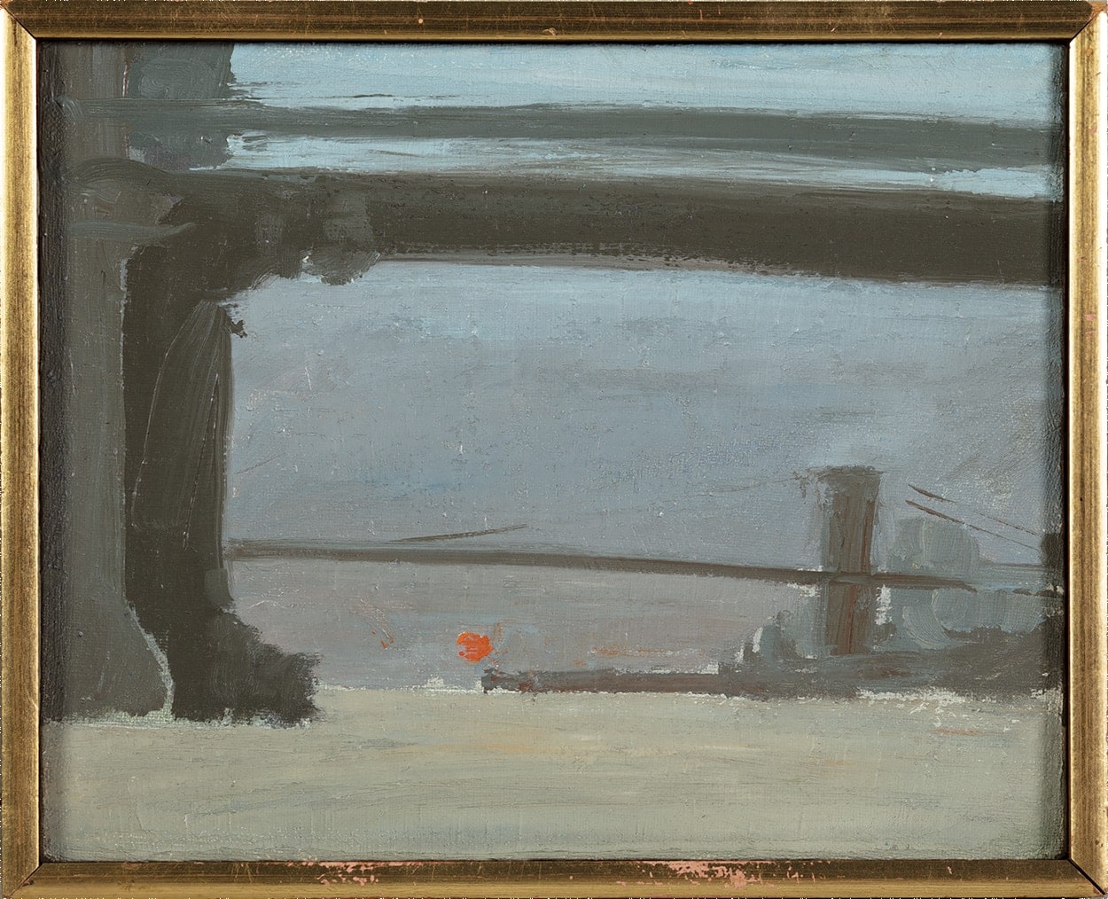 On stretcher bar: (east river / view of Bklyn Bridge– / (from Manhattan bridge–) / Arthur Cohen