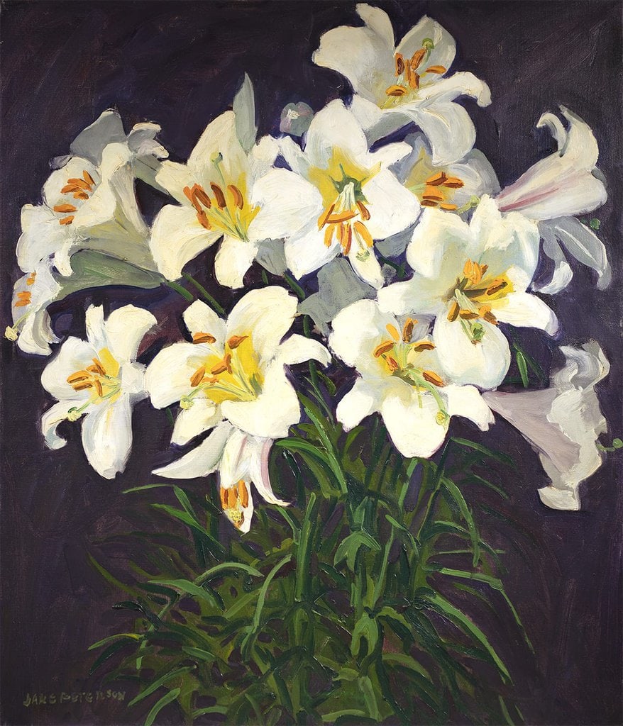 Tiger Lilies, oil on canvas, 25 x 20 inches, signed lower left: JANE PETERSON.; Endicott College Collection, Walter J. Manninen Trust, Beverly, Massachusetts