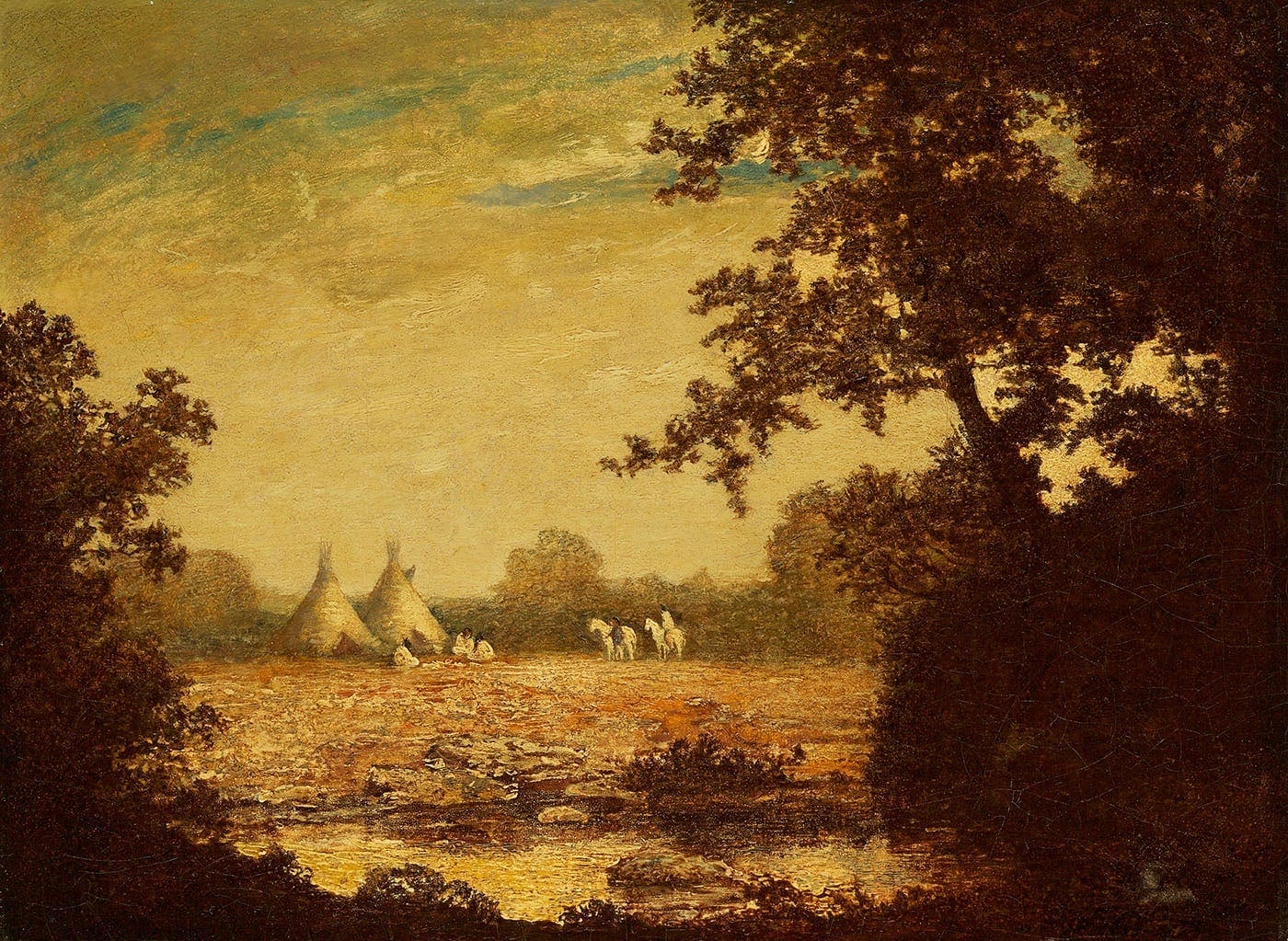The Enigma of Ralph A. Blakelock, 1847–1919, The Art Galleries, University of California Santa Barbara, California, January 7–February 2, 1969; California Palace of the Legion of Honor, San Francisco, California, February 15–March 16, 1969; Phoenix Art Museum, Arizona, March 24–April 27, 1969; The Heckscher Museum, Huntington, New York, May 17– June 23, 1969, no. 76 (as Indian Encampment)