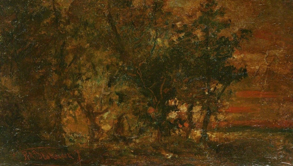 Sale, James D. Julia, Fairfield, Maine, August 25, 2010, lot 1450, from above (as Indian Encampment at Sunset)