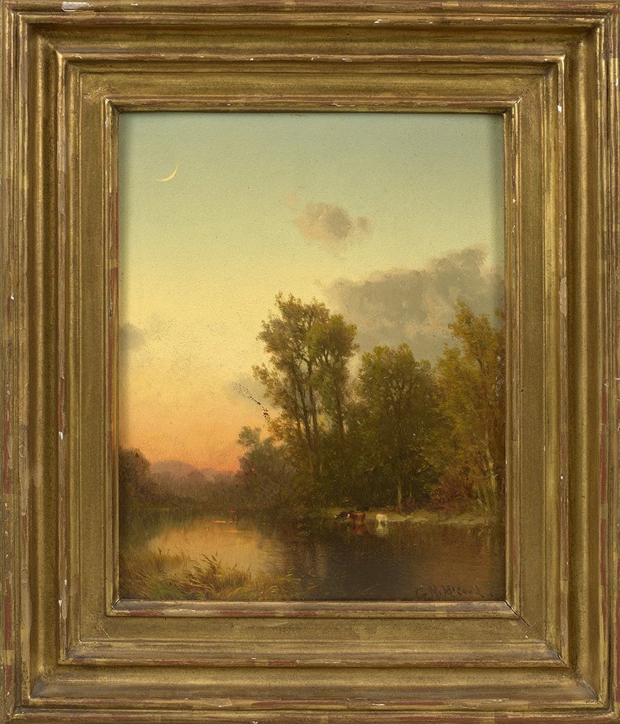 Landscape with Cows and Crescent Moon