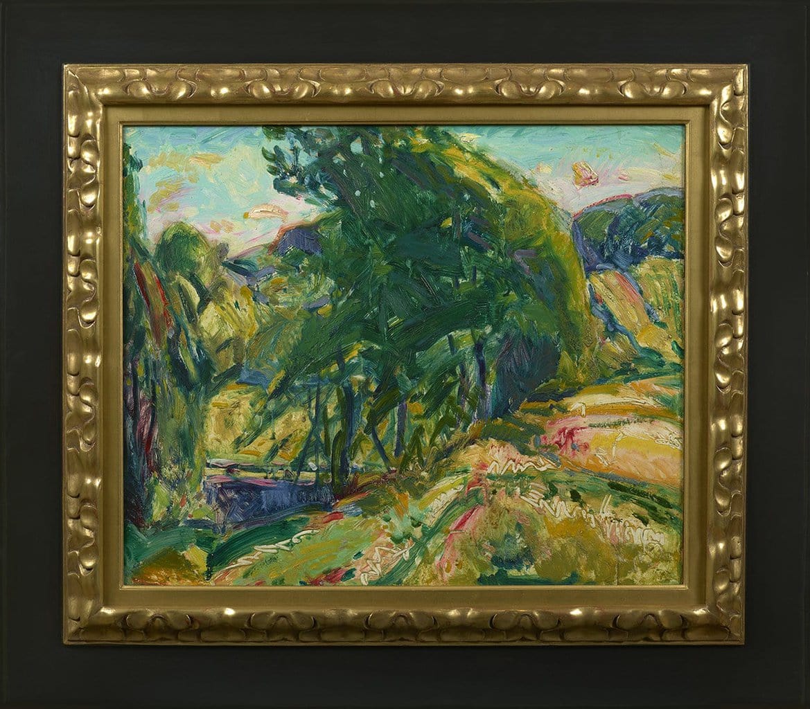 Landscape, ca. 1916, oil on gessoed board, 18 x 21¾ inches, signed lower left: A. H. Maurer; The Huntington Library, Art Collections, and Botanical Gardens, San Marino, California