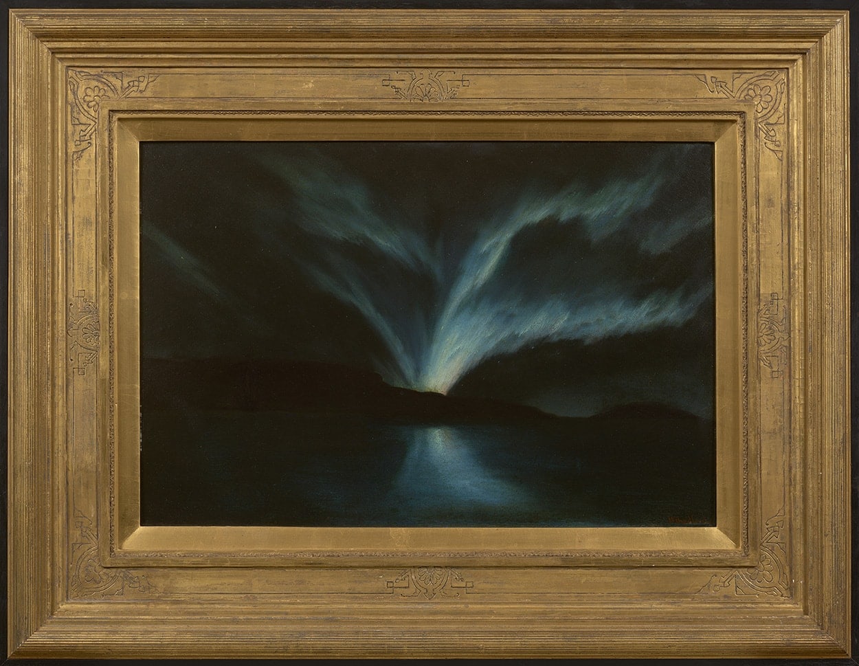 William Bradford is known for his ability to capture light in his luminous arctic scenes. Bradford undertook numerous northern expeditions beginning in 1861, which allowed him to experience these striking views first-hand.