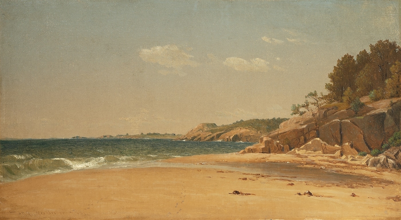 In August and September 1864, Gifford spent time on the New Hampshire and Massachusetts coasts. The horizon serves as an important compositional line in Gifford’s coastal Massachusetts scenes of the mid-1860s.[1]