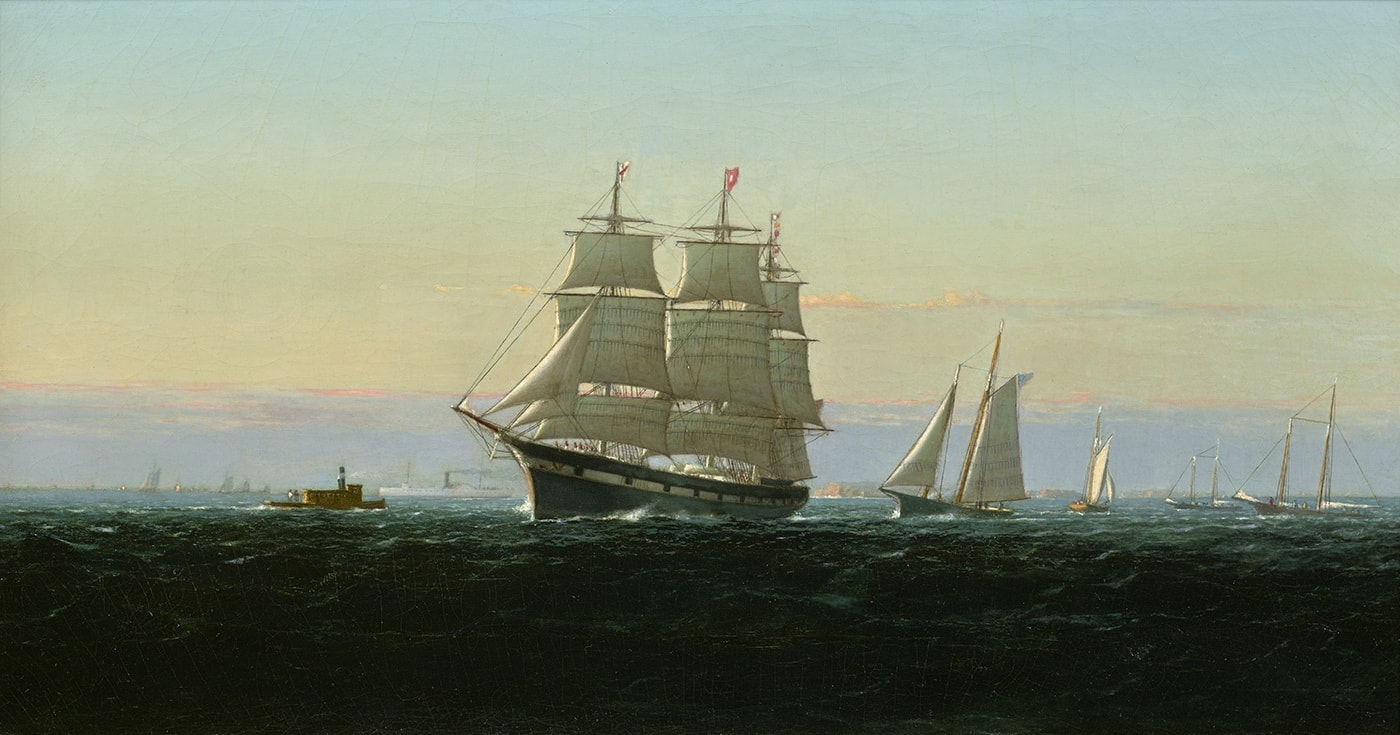 Marine Scene of a Clipper Ship Leaving Boston Harbor