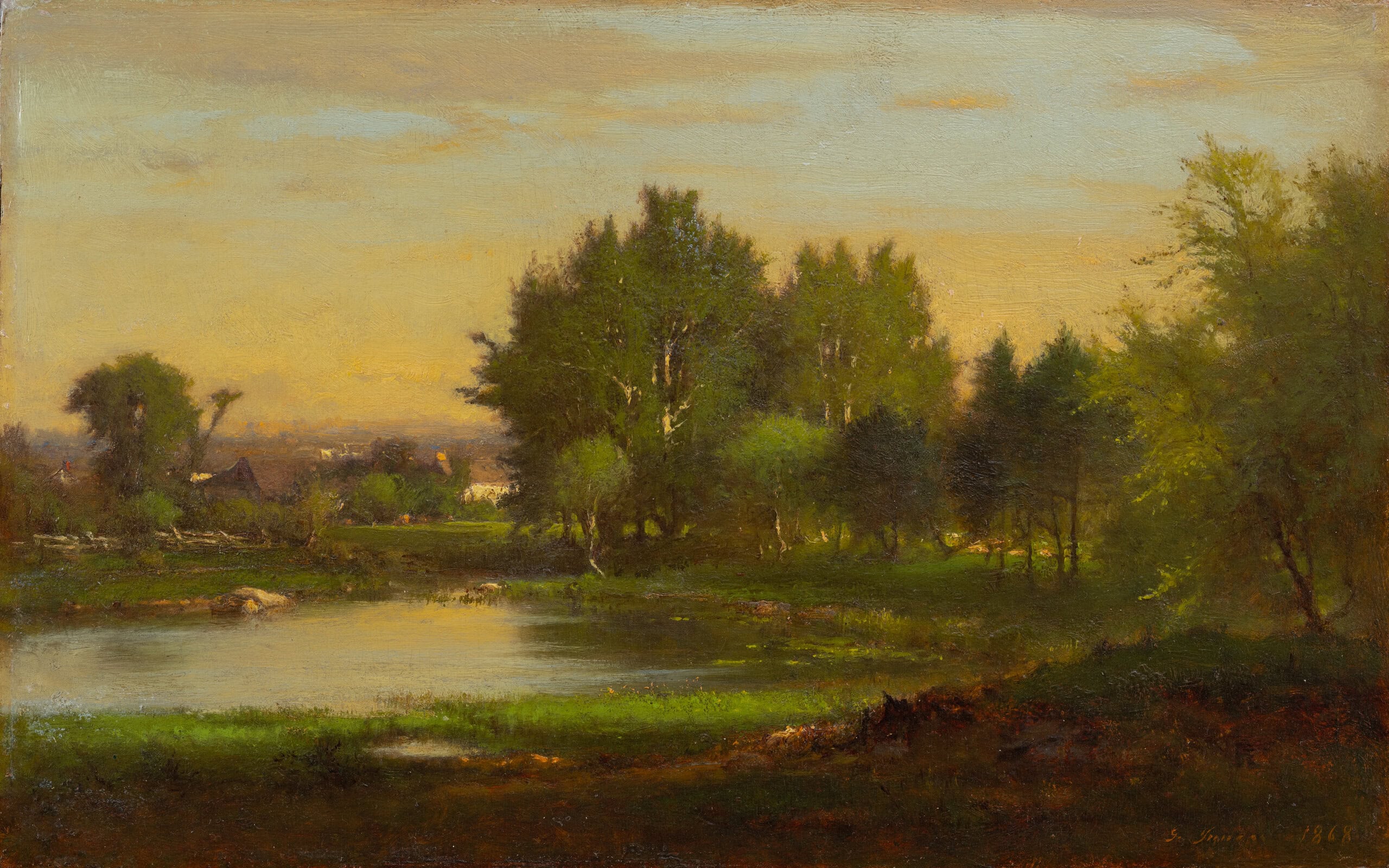 Evening at Medfield, Massachusetts, 1869, oil on canvas, 11 ¾ x 17 ½ inches, signed and dated lower right: Geo. Inness 1865; Fine Arts Museums of San Francisco, San Francisco, California
