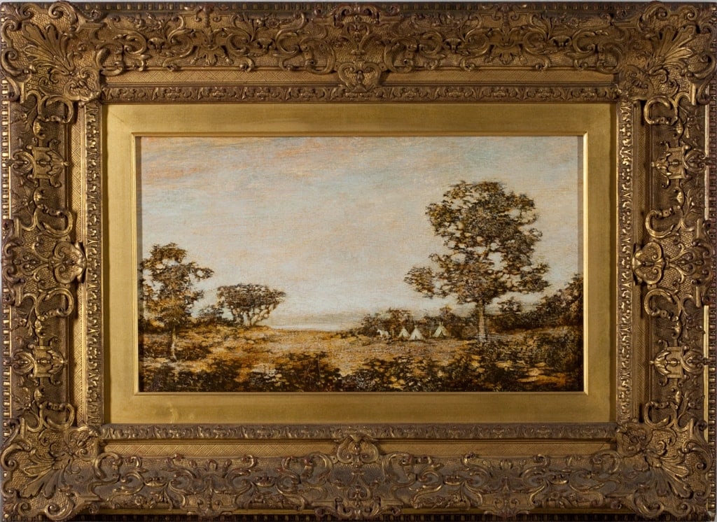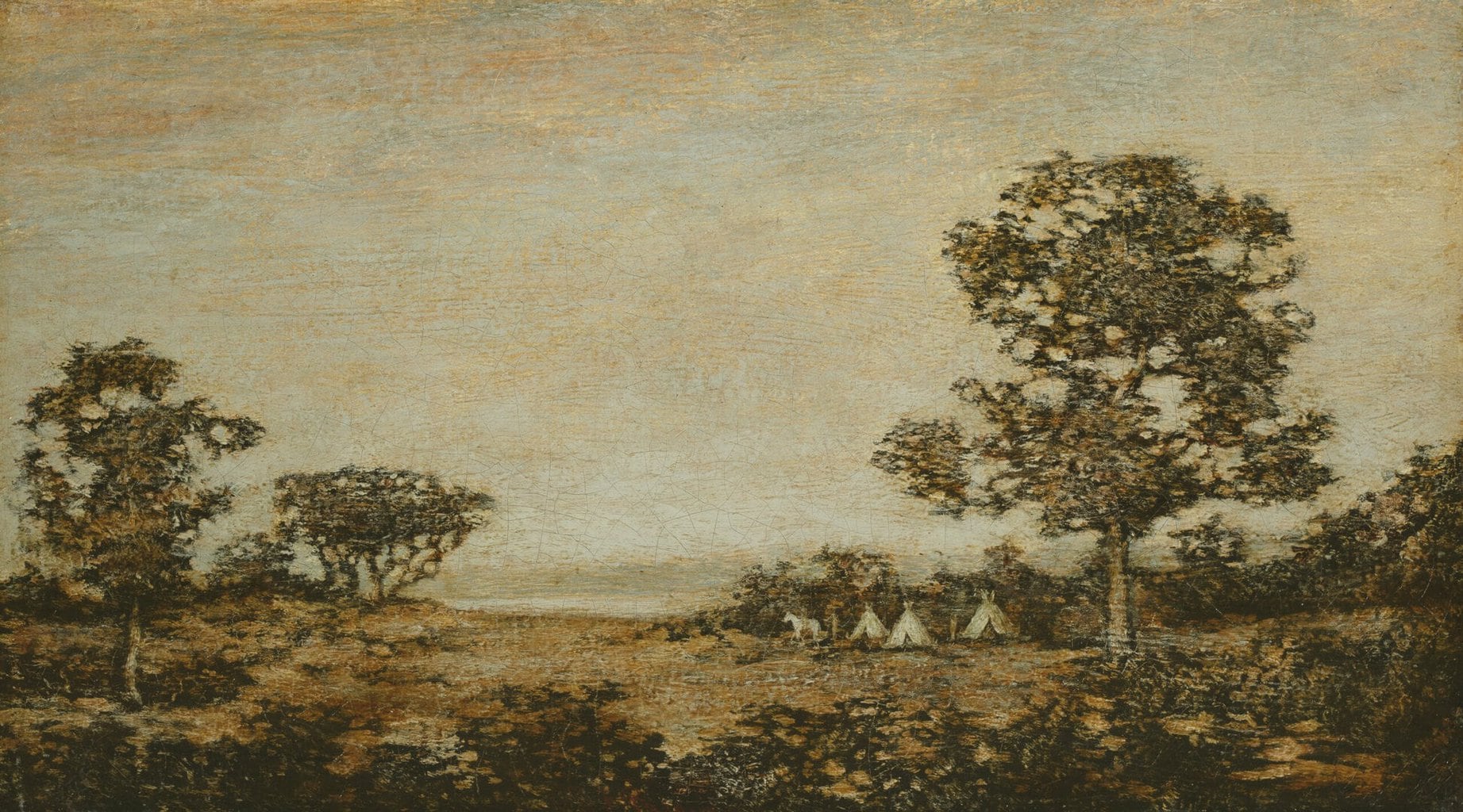 Indian Encampment on the James River, North Dakota, 1872, oil on wood panel, 15 ¾ x 28 ½ inches; Fine Arts Museums of San Francisco, San Francisco, California
